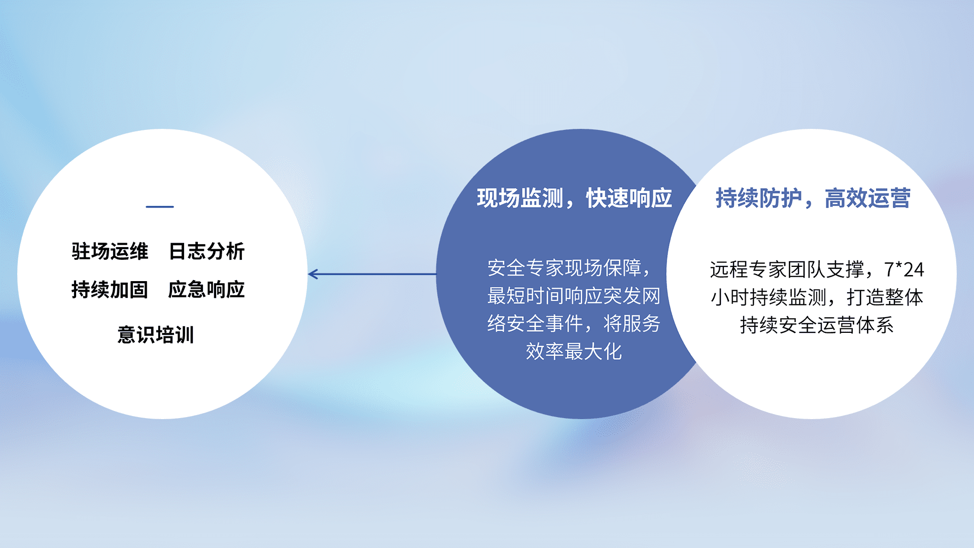 针对客户行业特性,,,,提供专属的一站式安全管理服务,,,帮助客户全面感知网络空间威胁,,,通过安全专家的线上、、、线下防护支持,,,,实现风险闭环,,将安全保障常态化,,,为客户打造常态化安全运维运营服务。。。。
